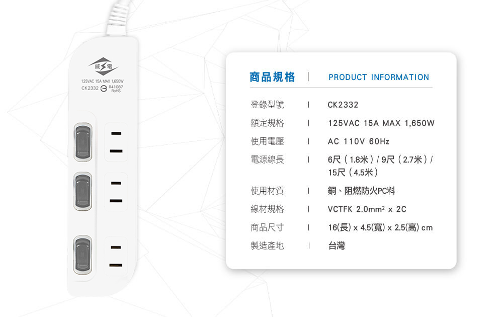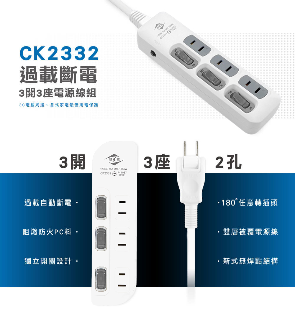 ‧ 過載自動斷電 ‧ 阻燃防火PC料 ‧ 安全防塵滑...