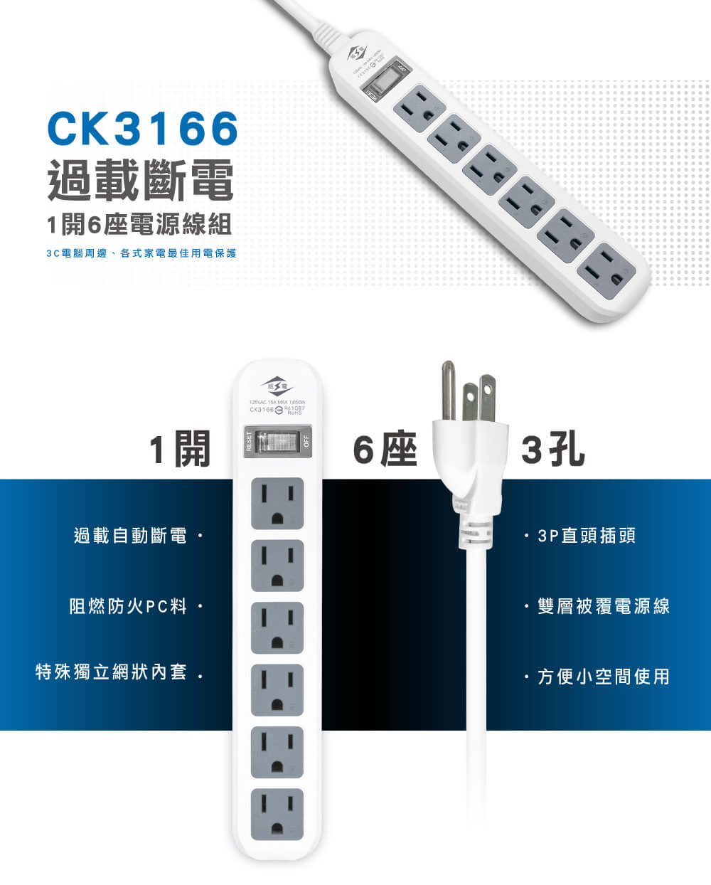 ‧ 過載自動斷電 ‧ 阻燃防火PC料 ‧ 雙層被覆電...