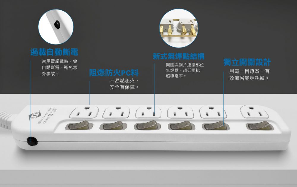 ‧ 防雷擊‧突波吸收 ‧ 過載自動斷電 ‧ 阻燃...
