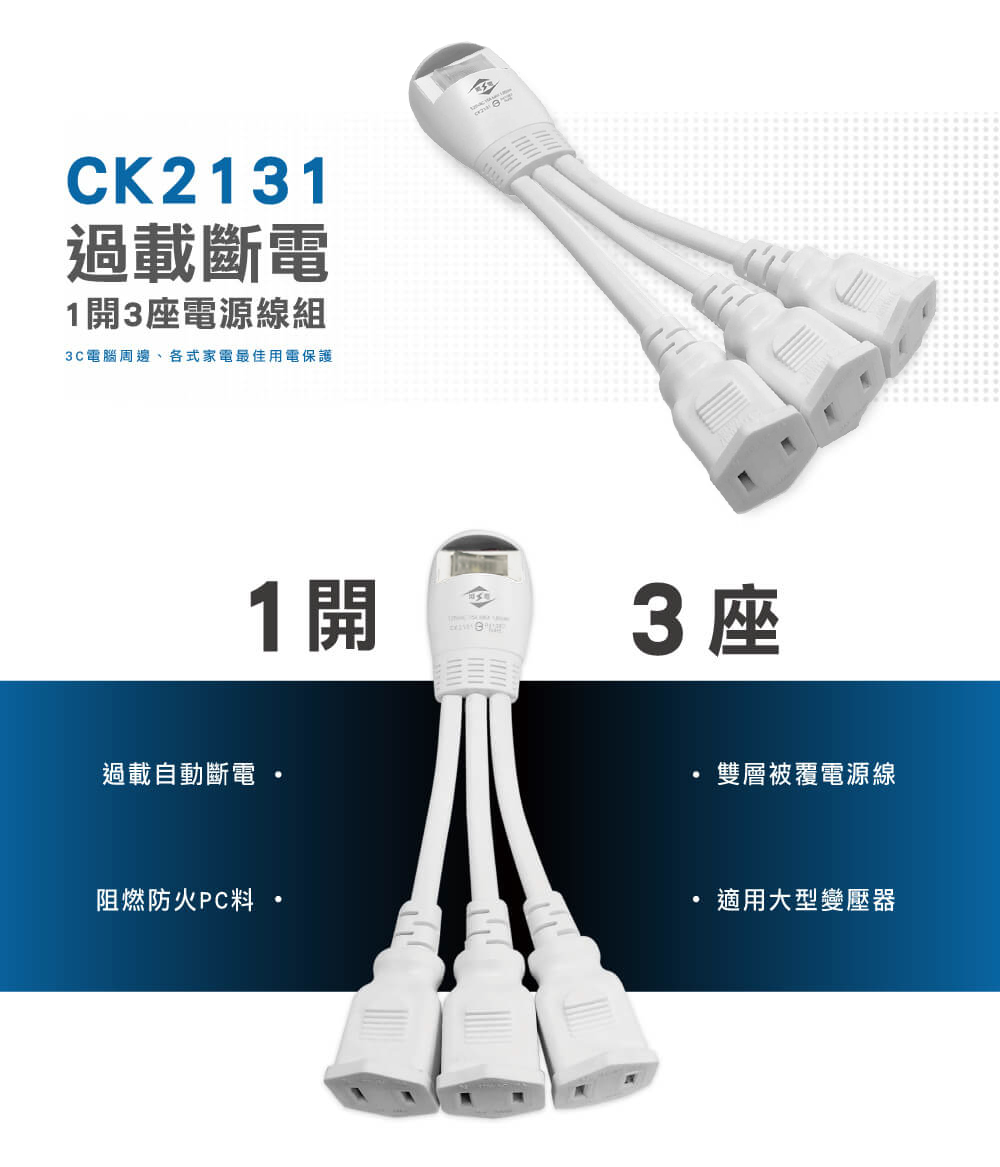 ‧ 阻燃防火PC料 ‧ 雙層被覆電源線 ‧ 過載自動...