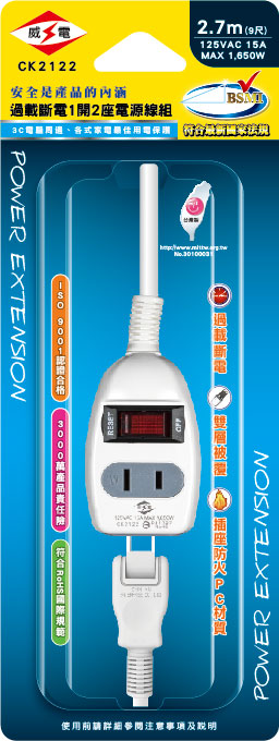 ‧ 阻燃防火PC料 ‧ 雙層被覆電源線 ‧ 過載自動...