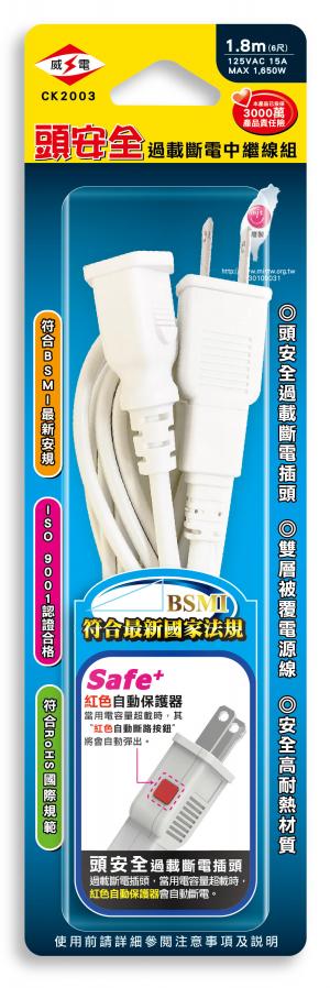 ‧ 過載自動斷電 ‧ 阻燃防火PCR料 ‧ 雙夾銅片...