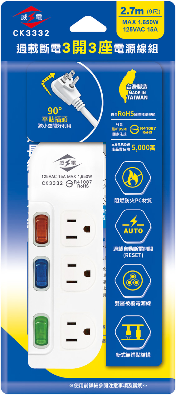 3P 3AC outlets Extension Cord - CK3332
