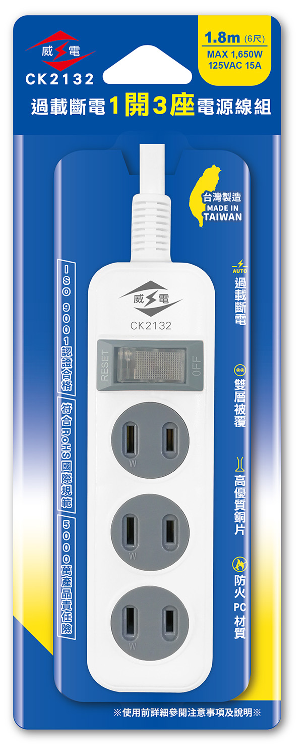 2P 3AC outlets Extension Cord - CK2132