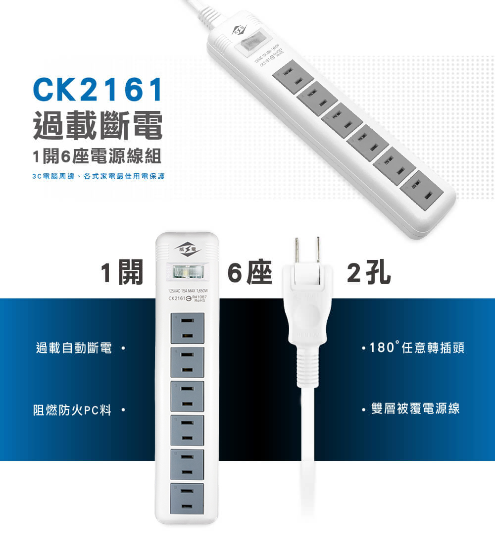 過載斷電1開6座電源延長線 - CK2161