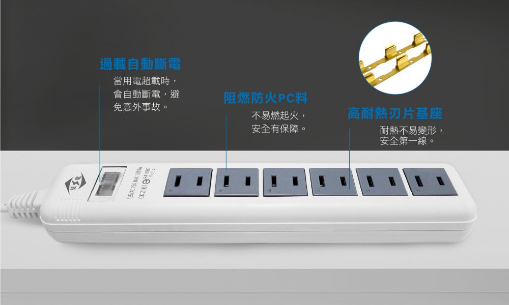 過載自動斷電保護 集中開關 180度任意轉插頭 2P插頭 固定孔