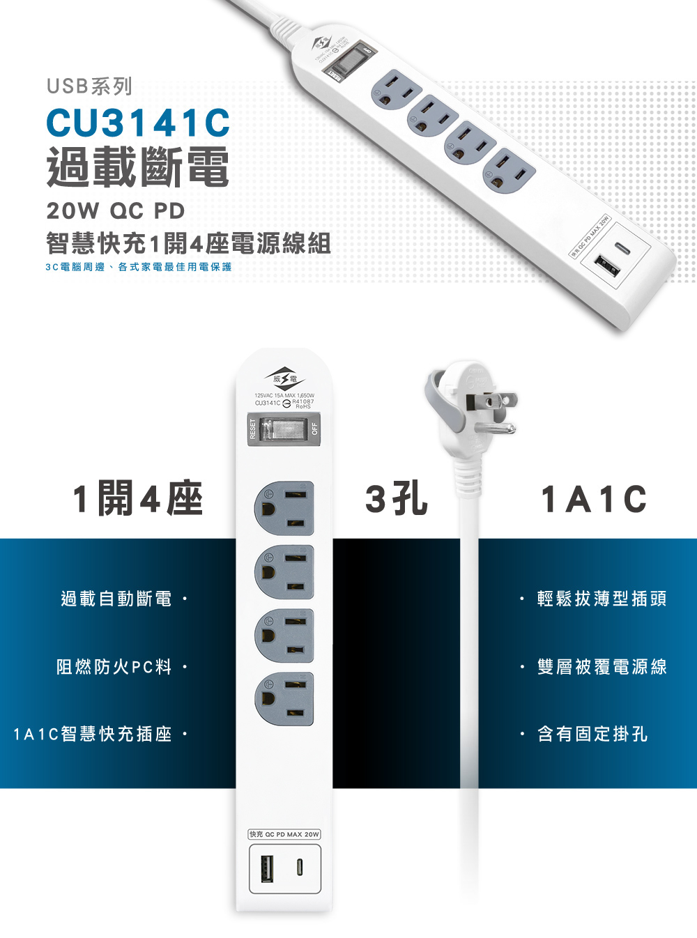 - USB輸出:5V/3A, 9V/2.22A, 12V/1.67A(Max.:20W)